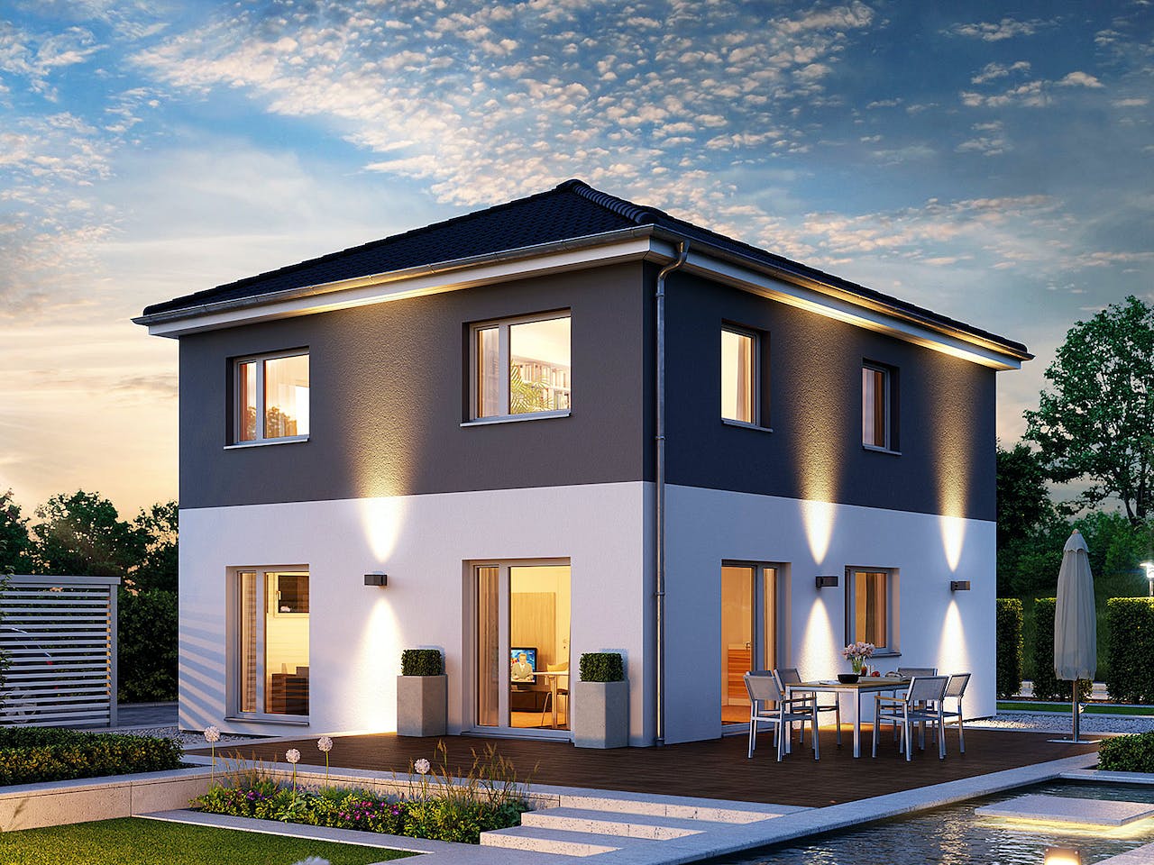 Angaben zum Preis: schlüsselfertig mit Bodenplatte; evtl. Preisabweichungen durch Sonderausstattung möglich.