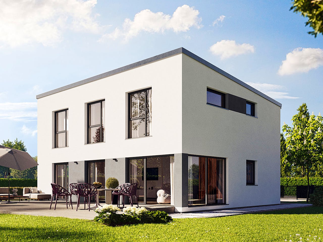 Ein Hausentwurf, viele Variationsmöglichkeiten: Der Grundriss des Vita 165 basiert auf der Planung der Villa 165, dem Hanse-Musterhaus in Frechen bei Köln. Das ist der Vorteil der individuellen Architektenplanung bei Hanse Haus: Ihnen gefällt der Grundriss eines Hauses, aber Sie hätten statt eines Walmdaches lieber ein moderneres Pult- oder Flachdach? Gerade bei zweigeschossigen Häusern lassen sich die Dachformen meist problemlos umplanen und das Haus bekommt dadurch einen ganz neuen Charakter. Lassen Sie sich also ruhig von unterschiedlichen Entwürfen und Stilrichtungen inspirieren und planen Sie mit uns genau Ihr Haus.
