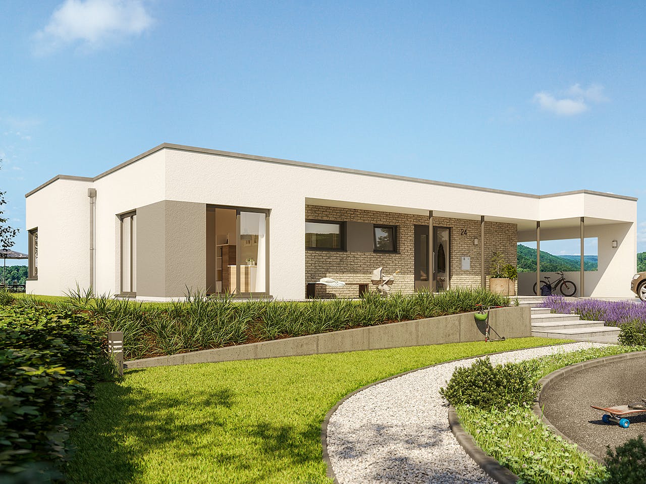 Traumbungalow im Bauhausstil mit integriertem Carport