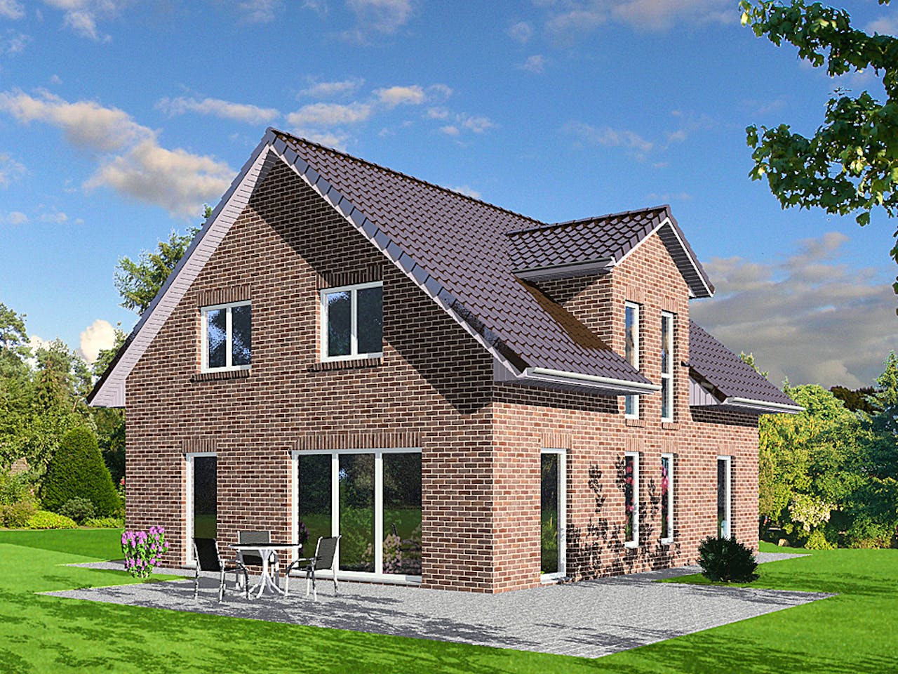 Die perfekte Lösung für schmale Grundstücke: Durch den Giebeleingang wird Ihr Grundstück optimal ausgenutzt. Der Zwerchgiebel fügt sich bündig in die Dachkontur ein. Die großzügig geschnittenen Räume lassen viel Platz für Ihre geschmackvolle Einrichtung. Dieses Haus passt in jede Nachbarschaftsstruktur – und bleibt doch in seiner Ausstrahlung einzigartig.