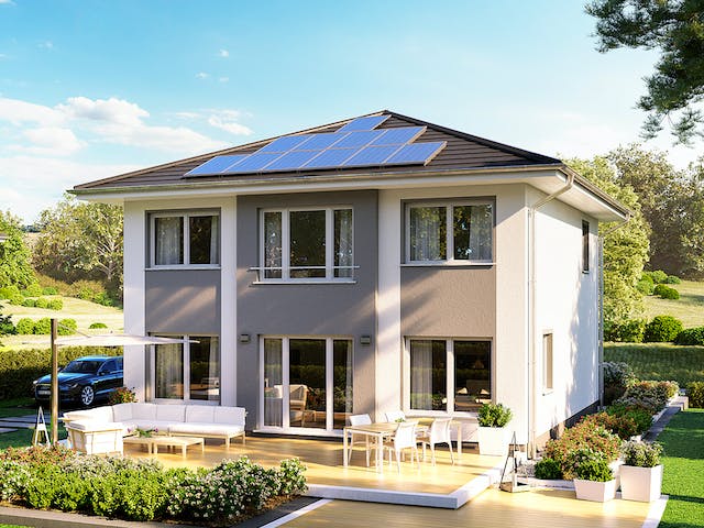 Der kubische Baukörper mit Walm- oder Satteldach, Erkern und attraktiven Farbkombinationen ergibt ein gelungenes Ganzes. Mit unserer Stadtvilla Modena verbinden wir großzügigen Planungsaufbau mit zeitloser Architektur.