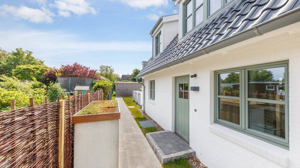 Hier in dörflicher Umgebung in Tinnum entsteht dieser charmante Neubau mit drei großzügigen Einheiten. Die Gesamteinheit besteht aus zwei Ferienwohnungen und einer Dauerwohnung, wobei die Raumaufteilung für alle drei Einheiten identisch ist. Die Gesamtflächen der jeweiligen Einheiten verteilen sich über vier Ebenen und bieten gemütliche Wohnatmosphäre mit einem geschmackvollem Raumkonzept. Die Räume sind lichtdurchflutet und großzügig geschnitten. Sie betreten die jeweilige Einheit über den östlich gelegenen Flur mit Garderobe und dem angrenzenden Gäste-WC. Jede Einheit verfügt im Erdgeschoss über einen offenen und großzügigen Wohn- und Essbereich mit moderner und hochwertig ausgestatteter Kücheninsel (Front und Wangen in Beach Grey Mattlack, Arbeitsplatten Quarzstein Noble Pro Frost). Hier können Sie am Küchentresen verweilen oder im einladenden Essbereich gesellige Mahlzeiten einnehmen. Im Wohnzimmer haben Sie die Möglichkeit gemütliche Abende vor dem Schwedenofen (Krona Porzellanweiß Modell 12.1) zu verbringen. Vom Wohnzimmer aus haben Sie direkten Zugang auf die sonnigen Freisitze. Aus dem Erdgeschoss gelangen Sie über die Treppe in die Empore des Dachgeschosses. Dort erwarten Sie jeweils 2 große Schlafzimmer und ein angenehmes helles Duschbad. Die Bäder sind hochwertig mit sandfarbenem Natursteinfliesen (Silceramiche Feinstein, Park Avenue Collection) und Premium-Amarturen (Grohe) gestaltet. Im Untergeschoss erwarten Sie ein weiteres Highlight dieser Offerte. Hier finden Sie in Ihrem Wellnessbereich mit finnischer Sauna erholsame Stunden. Ein weiterer großer Raum, der Hauswirtschaftsraum sowie ein Raum für Waschmaschine und Trockner ergänzen diese Ebene. Im Spitzboden steht Ihnen ein weiterer Raum zur individuellen Nutzung zur Verfügung. Alle Hausteile sind mit Natursteinfliesen und Eichendielen (Eiche astig gebürstet und geölt) ausgestattet und verfügen über hochwertige Einbauschränke. Eine Fußbodenheizung wärmt die Einheiten vom Untergeschoss bis zum Dachgeschoss. Finden Sie hier in der "Villa Tinnum" Ihr neues Zuhause. Das Anwesen verfügt über einen liebevoll angelegten Garten und je einen Außenstellplatz pro Einheit. Insgesamt bietet das Haus höchsten Wohnkomfort und ist ideal für Familien oder als Investment für die Ferienvermietung. Die Einheiten können einzeln oder gesamt erworben werden.