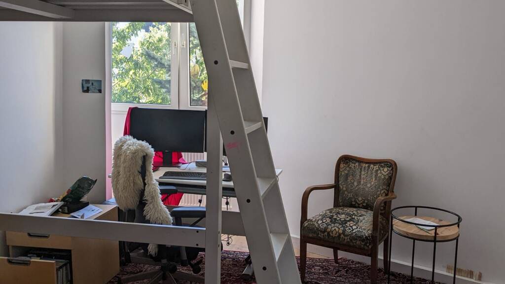 Die Wohnung ist ein Altbau mit hohen Decken, großzügigen Räumen und toller Beleuchtung. Wir haben unsere Wohnung mit Stücken dekoriert, die Geschichte haben und uns viel bedeuten.