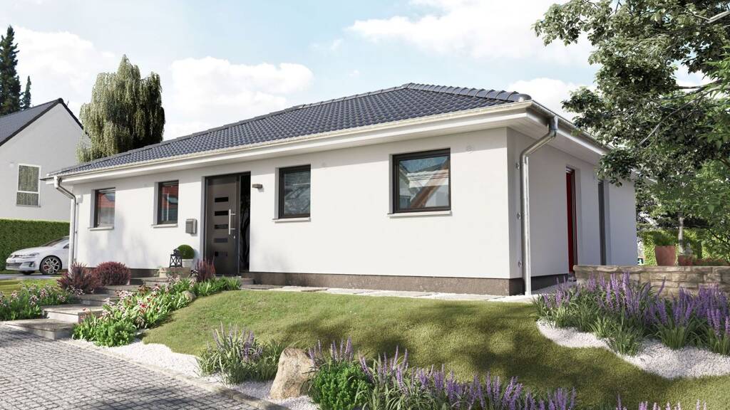 Für eine Familie mit zwei Kindern ist der Bungalow 110 ein ideales Zuhause. Er bietet ein gemütliches Wohnzimmer mit Essbereich, ein geräumiges Schlafzimmer und zwei weitere Zimmer. Alle Räume sind dank großer Fenster hell und freundlich. Mit quasi einem Schritt sind Sie mit Ihren Liebsten im Garten und können die Sommerzeit bei einem Grillabend genießen.