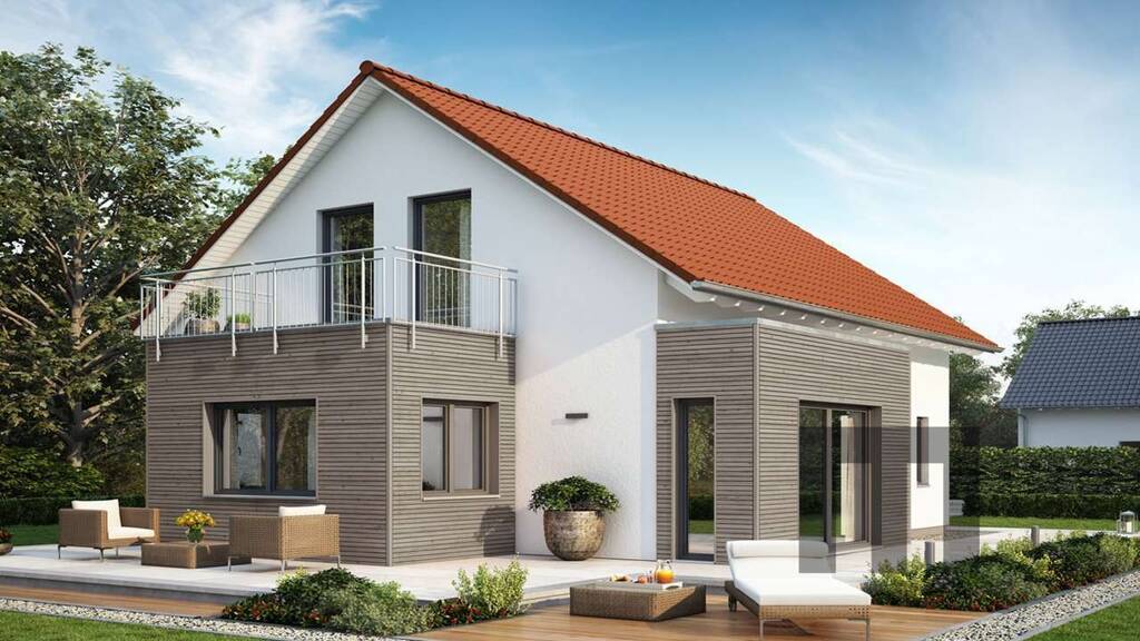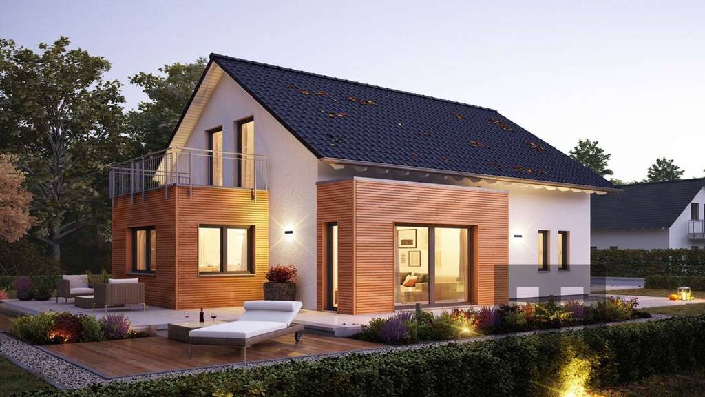 + Satteldach mit selbstreinigender Ziegeleindeckung, sturmverklammert + Dachrinnen und Fallrohre aus Titanzink + Dreifach-verglaste Wärmeschutzfenster + Außenfensterbänke aus Aluminium + Rollläden aus Aluminium + Haustür mit Edelstahlgriff und Mehrfachsicherheitsverriegelung + Freiraumupgrade auf 2,75 m Deckenhöhe im Standard + Mineralischer Struktur-Außenputz in weiß + Bodenplatte (Keller optional) inkl. Bodengutachten + Installation Luft-Wasser-Wärmepumpe mit Fußbodenheizung + Elektroinstallation + Photovoltaikanlage + Sanitärrohinstallation + Installation Be- und Entlüftungsanlage + Buchenholztreppe + Trockenbau (Dämmung + Beplankung) - Material + Grundstückskosten