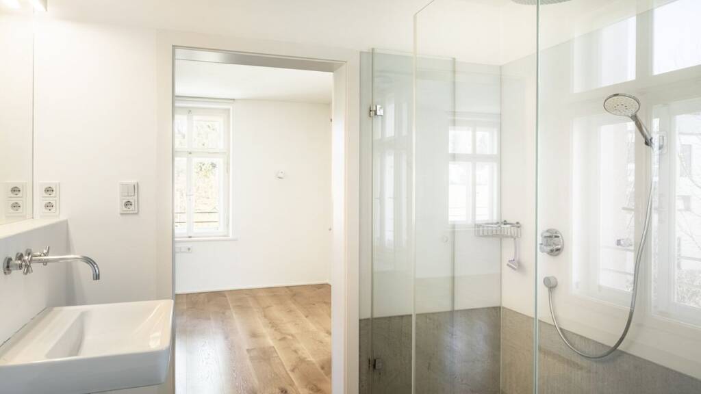 * Wohnfläche: ca. 255,10 m² * 2. OG + DG in einer historischen Ceconi-Villa * Erstklassige Lage im Nonntal * Terrasse: ca. 11,18 m² * 4 Schlafzimmer, 2 Bäder, XL-Wohn-Essbereich im DG * Küche: hochwertig ausgestattete Showküche und Back Kitchen * Bäder: großes Bad mit Wanne und Walk-in Dusche + Duschbad mit WC * 2 Pkw-Stellplätze, davon einer mit E-Anschluss