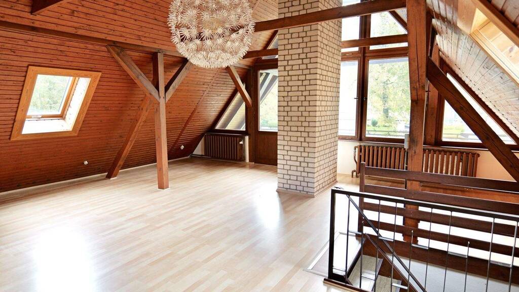 Ein besonderes Highlight ist das helle Atelier im Obergeschoss, das eine inspirierende und kreative Atmosphäre ausstrahlt. Hier können Sie Ihre Ideen verwirklichen oder sich einfach zurückziehen und entspannen. Der gemütliche Kamin im Wohnzimmer sorgt für wohlige Wärme und lädt zu geselligen Abenden mit Familie und Freunden ein.