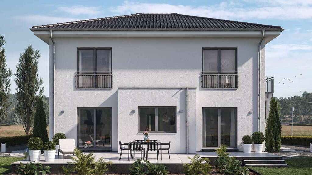 + Stadtvilla Life Style 18.02 W (Abb. teilweise mit Sonderwünschen) + Architektenleistungen (Planung, Bauleitung, Bauantrag, Vermessung) + Grundstück + Baunebenkosten geschätzt + Bodenplatte inkl. Baugrunduntersuchung (Keller optional möglich) + Feinputz außen + Alle Innenwände + Aluminium Rollläden + Vierfach Versicherungsschutz + LWWP mit Fußbodenheizung mit Montage + zentrale Be- und Entlüftungsanlage mit Montage + Sanitärrohinstallation + Elektropaket mit Montage + Geschosstreppe EG/DG + Material Dämmung und Beplankung