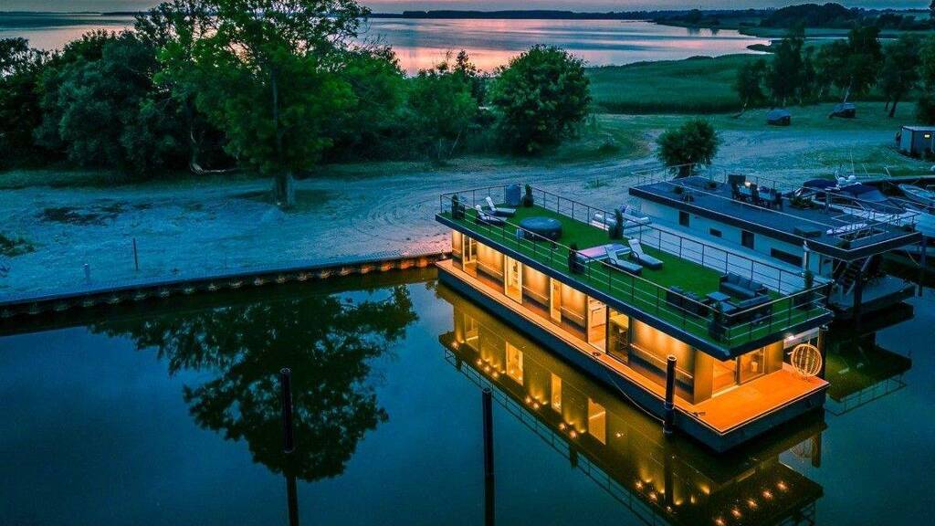 LUXUS Hausboot - 3 Etagen - 100m² Wohnen + 120 m² SONNENTERRASSE - Kamin, Kino, komplett individuell