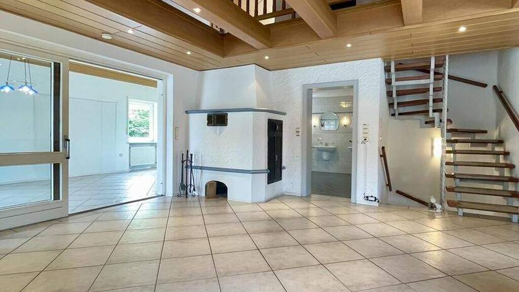 Die Immobilie erstreckt sich über drei Geschosse: Untergeschoss, Erdgeschoss und Dachgeschoss, das durch eine offene Galerie besonders charmant und hell gestaltet ist. Insgesamt stehen sechs großzügige Zimmer und zwei Bäder zur Verfügung, wodurch eine flexible Nutzung und genügend Platz für alle Bewohner gegeben ist.
