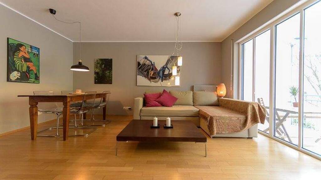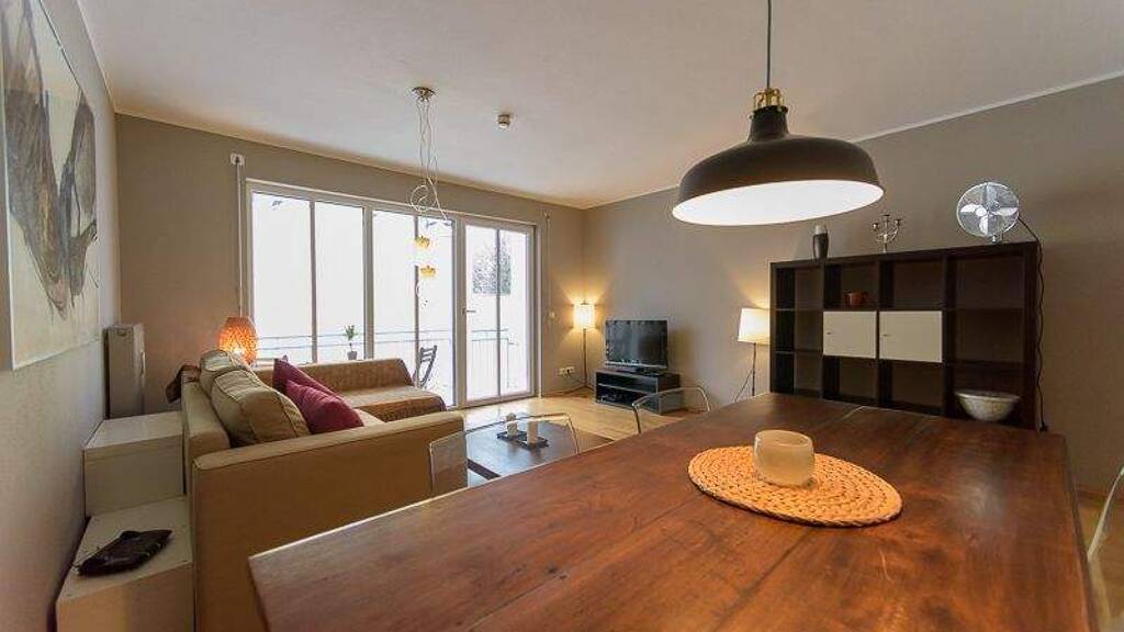 The elegant 2-room townhouse was renovated and refurbished in 2018. An elevator brings you up to the 2nd floor apartment. The elegant bedroom invites you to the cozy box spring bed (160x200). The living room is spacious with a stylish dining area, mahogany table and a sofa. There is a large balcony in summer waiting for you. The bathroom has a bathtub, which has a shower too. For a comfortable stay, a fully equipped kitchen with cooking and dining utensils, fridge, separate freezer, stove, oven, microwave, dishwasher, coffee maker, kettle. Additional equipment such as hairdryer, washing machine, vacuum cleaner, TV, bedding, towels and W-LAN connection (Internet) are inclusive.