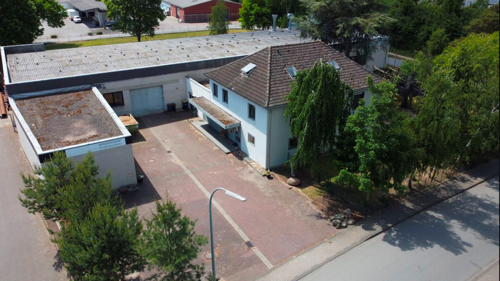 Diese Liegenschaft vereint Wohnen und Arbeiten unter einem Dach. Sie besteht aus einer großzügigen Produktionshalle mit ca. 1.144 m² Nutzfläche, einem Wohnhaus mit rund 270 m² Nutzfläche sowie einer geräumigen Doppelgarage.
