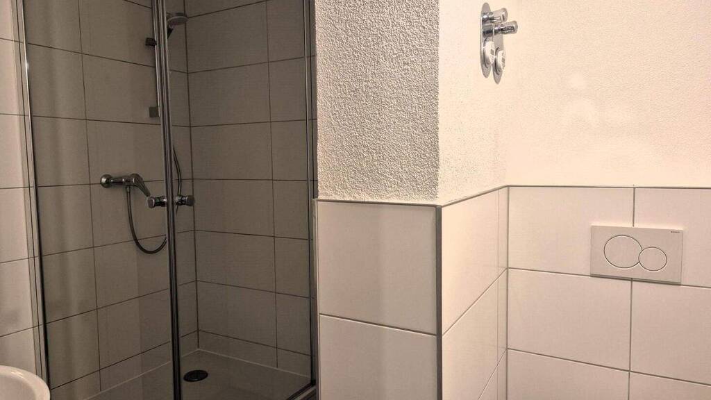 Diese 2,5-Zimmer-Wohnung befindet sich im 2. Obergeschoss eines 5-Parteien-Hauses und wurde 1967 erbaut. Die ca. 57 qm verteilen sich auf eine offene Küche mit Essbereich, ein Wohnzimmer, ein Schlafzimmer und ein Duschbad. Zusätzlich gibt es eine kleine Kammer. Die Wohnung ist saniert: Wände, Böden, Türen mit Rahmen, Bad und Elektrik wurden erneuert. Die Fenster sind neu verfugt und der Eigentümer plant in naher Zukunft einen Fensteraustausch. Eine Küche ist nicht vorhanden, sodass der Mieter sie nach eigenen Vorstellungen einrichten kann. Zur Wohnung gehören ein großer Kellerraum und ein Speicher auf dem Dachboden.