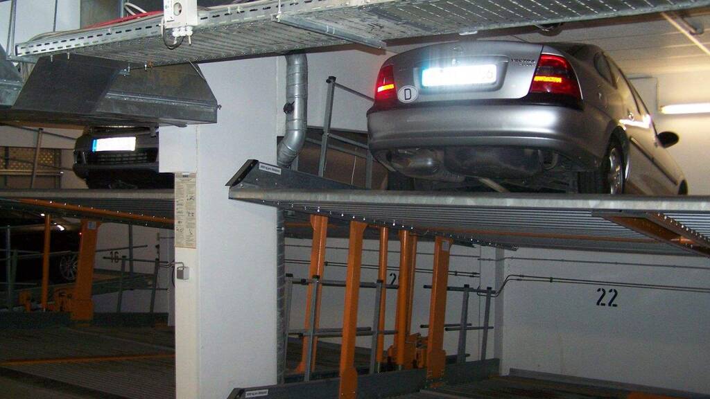 Die Garagenstellplätze befinden sich im Untergeschoss des 2004 fertiggestellten Wohn- und Geschäftshauses. Die Garage ist bequem zu befahren hat breite Fahrgassen sowie eine separate Zu- und Ausfahrt. Die Stellplätze befinden sich zum Teil in einem sogenannten Doppelparksystem mit oberen und unteren Stellplätzen und Größen von 2,50 m x 5 m. Die max. Höhe liegt bei ca. 1,50 m und ist unbedingt vor Ort zu prüfen.