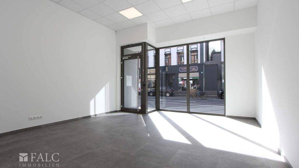 Das Herzstück ist der großzügige, offen gestaltete Verkaufsraum. Eine bodentiefe, großformatige Schaufensterfront sorgt für maximale Tageslichtausbeute und bietet eine hervorragende Werbefläche direkt an der hochfrequentierten Rathausstraße nahe dem Bethlehem Gesundheitszentrum Stolberg.