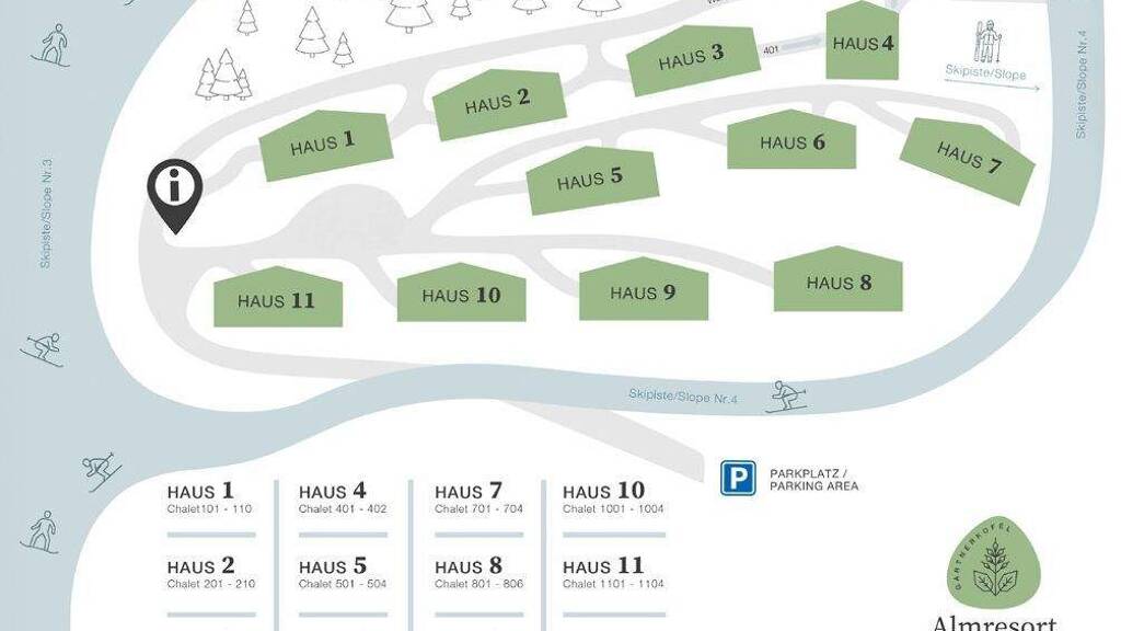 In sonniger Hanglage verteilen sich 57 stilvolle Appartements auf 11 Häuser, die sich elegant an die Bergflanke schmiegen. Die besondere Lage eröffnet allen Einheiten freie Ausblicke auf die Skipiste und die umliegende Bergwelt - ein Panorama, das sowohl emotional überzeugt als auch nachhaltige Wertbeständigkeit bietet.