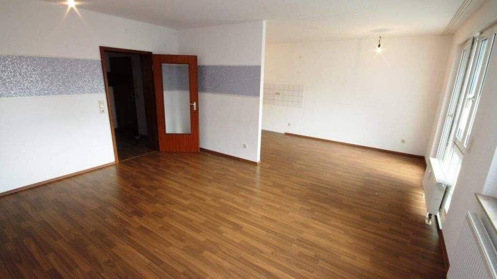 - 2 Zimmer (Wohnzimmer mit großem Balkon) - 1 Küchenzeile - zum Wohnzimmer hin offen - 1 Diele mit geräumigem Wandschrank - 1 Bad mit Wanne - 1 Kellerraum, sowie 1 Trocken- und Waschraum - kostengünstige, zentrale Warmwasserbereitung