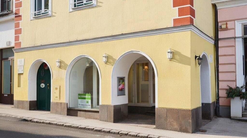 Zur unbefristeten Vermietung steht ein vormals als Damenmoden geführtes Geschäftslokal, direkt im belebten Teil des Perchtoldsdorfer Zentrums. Das Geschäftslokal, in einem nostaligeschem Bürgerhaus von 1800 gelegen, verfügt neben mehreren Auslagen auch über eine gedeckte Passage mit rund 5 m², in der ebenfalls Waren ausgestellt werden können. Der Innenbereich besteht aus zwei hintereinander liegenden Verkaufsräumen wovon der gassenseitige Raum rund 36 m² und der dahinter liegende Raum mit Umkleidekabine rund 24 m² misst. Weiters verfügt das Lokal über ein Büro mit rund 14 m² sowie ein Lager mit rund 24 m². Weiters gibt es einen kleinen Zwischenraum indem die Heiztherme verbaut ist sowie eine Toilette. Beheizt wird mit einer Gasetagenheizung. Die auf den Fotos ersichtlichen Möbelstellagen und Regale verbleiben allesamt im Lokal. Das Lokal steht ab sofort zur Verfügung. Der derzeitigen wirtschaftlichen Situation angepasst, wird das Lokal zu einer Staffelmiete, angeboten. Im 1. Jahr beträgt die Miete € 1.500,-, im 2. Jahr € 1.600,- und ab dem 3. Jahr € 1.700,- jeweils inkl. Betriebskosten. Auf eine Indexanpassung während der ersten zwei Jahre wird verzichtet und wird erst ab dem 3. Jahr vereinbart. Da die Vermieterin der Kleinunternehmerregelung unterliegt, ist in diesem Betrag keine Umsatzsteuer enthalten. Die Kosten für Strom und Gas trägt der Mieter.