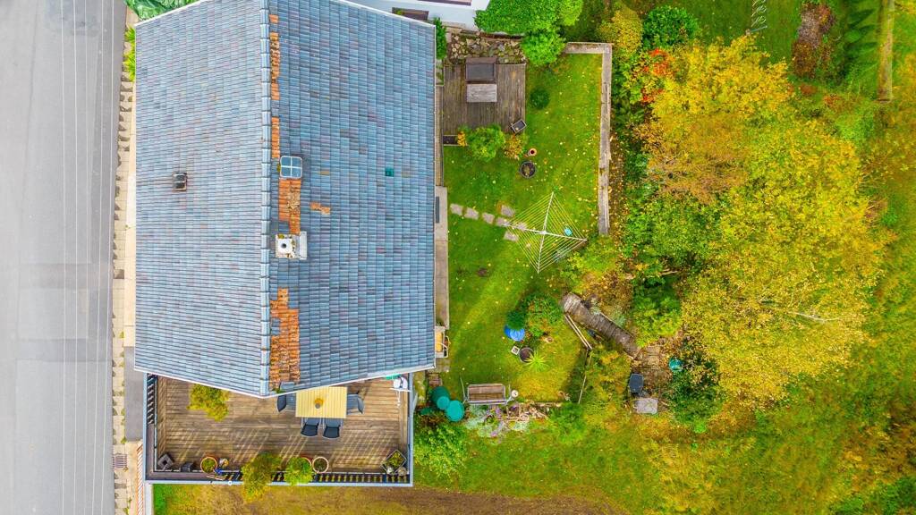 Im Obergeschoss befindet sich ebenfalls ein Durchgangs- und Schlafzimmer, ein Abstellraum, sowie das geräumige Wohnzimmer mit Zugang zur Terrasse oberhalb der Garage.