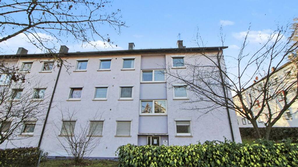 Über das Treppenhaus gelangen Sie in die Wohnung im 1. Obergeschoss eines Mehrparteienhauses. Die Wohnfläche beträgt ca. 56 m² und verteilt sich auf zwei Zimmer, was sie ideal für Singles oder Paare macht. Ergänzt wird das Raumangebot durch ein Badezimmer mit Badewanne. Zur Ausstattung gehört unter anderem eine Einbauküche.
