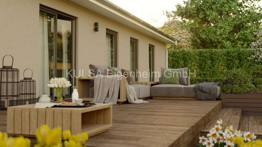 Familienleben auf einer Ebene - Der Bungalow 131 hat es in sich - 5 Zimmer, zwei Kinderzimmer und zwei Bäder - viel Wohnfläche und clever nutzbarer Stauraum für die ganze Familie. Die kluge Raumaufteilung bietet eine große Wohnküche in der Sie mit ihren Lieben Freizeit und Essen genießen können. Das traumhafte Wohnzimmer mit seinen großen Fenstern ist der perfekte Ort zum Entspannen, bietet freien Blick in Ihren Garten und mit wenigen Schritten sind Sie auf Ihrer Terrasse im Grünen.