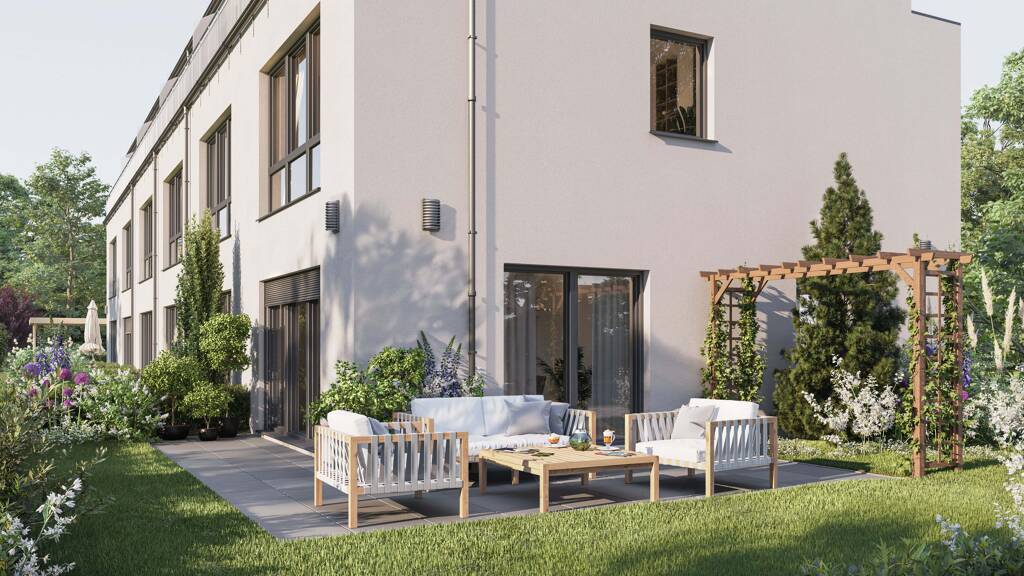 Hinter einer klassischen, hellen Putzfassade verfügen die Stadthäuser über Wohnflächen zwischen ca. 104 - 114 qm und 4 Zimmer, verteilt über drei Ebenen. Gut durchdachte Grundrisse bieten mit privaten Gärten, Terrassen und Austritten im Staffelgeschoss genügend Platz für die ganze Familie.