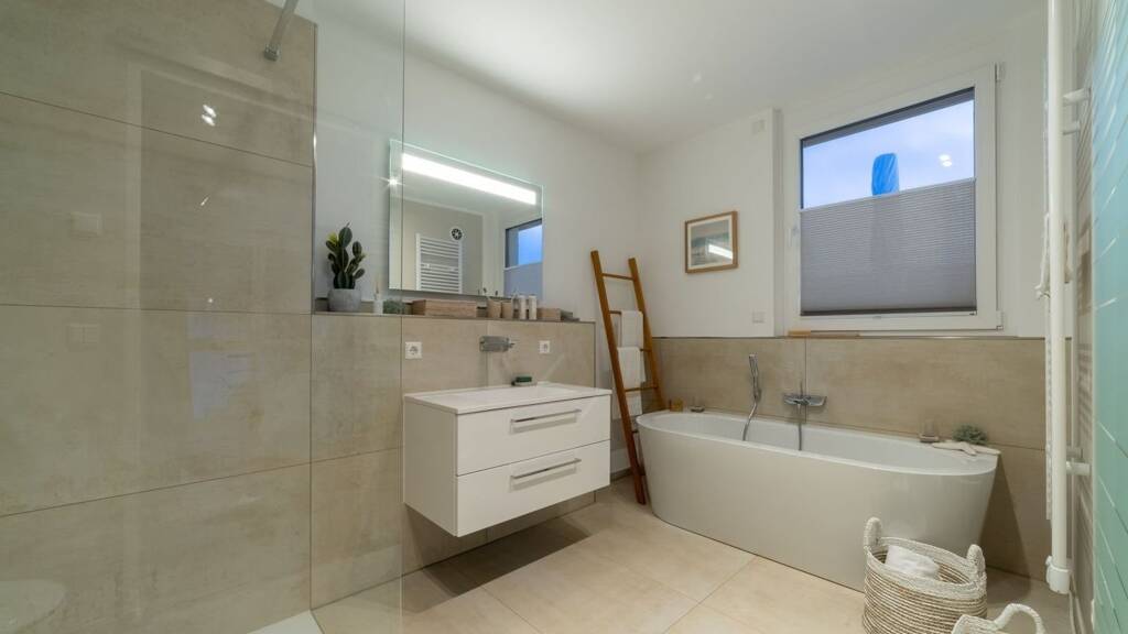 Badezimmer: Badewanne, Bad mit Dusche, Bad mit Fenster