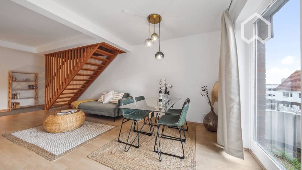 Wir vermieten unsere gemütliche, 67 qm große Maisonette-Wohnung im lebendigen Stadtteil Altona. Die Wohnung ist verkehrsgünstig gelegen, nur wenige Gehminuten von Geschäften, Restaurants, Parks sowie Bushaltestellen und dem S-Bahnhof Altona entfernt.