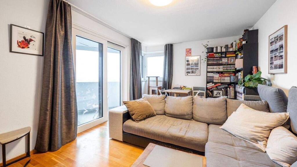 Großzügiges Wohnzimmer mit Zugang zum Balkon