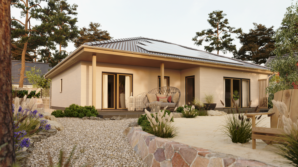 Ein Bungalow, der begeistert - Ein Bungalow, der es – im wahrsten Sinne des Wortes – in sich hat: viel Platz, keine Stufen, zwei Bäder und vieles mehr finden Sie im Bungalow 128. Dank der klugen Raumaufteilung kann der Bereich neben dem Eingang als Einliegerwohnung genutzt werden. Je nach Wunsch oder Lebensphase können Sie diese als abgeschlossenen Arbeitsbereich nutzen oder als Wohnung mit separatem Eingang vermieten.