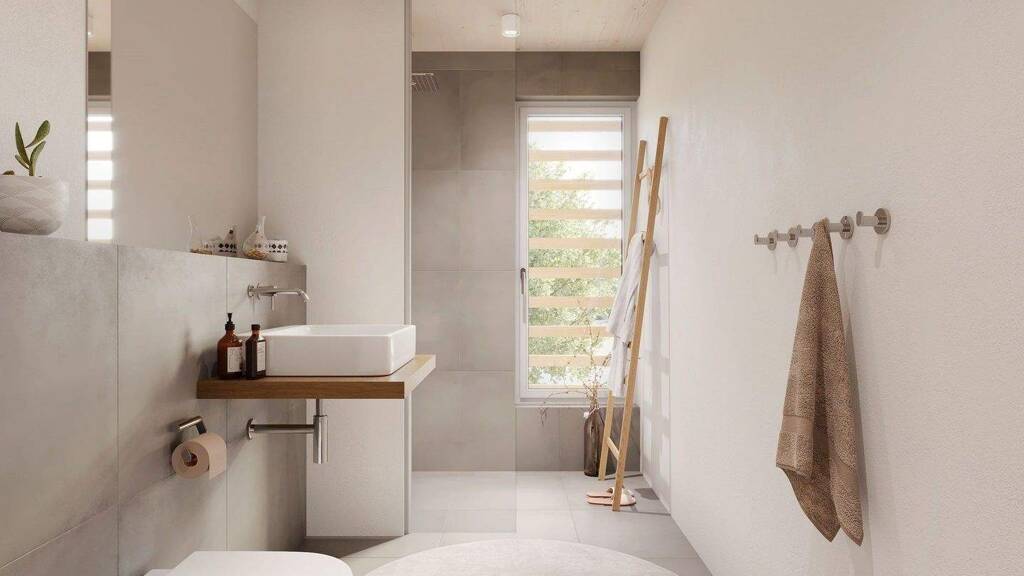- Badezimmer: Bad mit Dusche, Bad mit Fenster