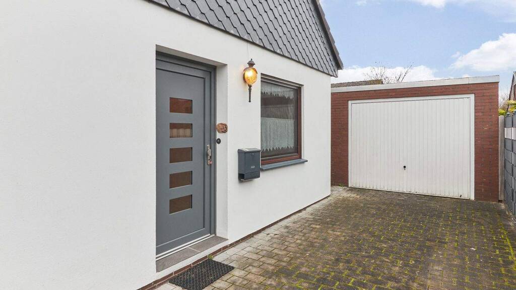 Abgerundet wird das Angebot durch eine Garage mit elektrischem Tor, einen gemauerten Außenabstellraum neben der Terrasse sowie ein Gartenhäuschen im hinteren Gartenbereich.