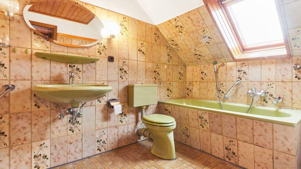 Das großzügige Wohnzimmer mit langlebigen Eichenstäbchenparkettboden, gemütlichem Gas-Kamin (derzeit außer Betrieb) und Panoramafenster bietet viel Helligkeit und Blick in den Garten. Von hier gelangen Sie direkt auf die Terrasse mit elektrischer Markise. Die separate Küche bietet Platz für einen kleinen Esstisch und lässt sich nach eigenen Vorstellungen modernisieren. Ein Duschbad mit Fenster ergänzt das Erdgeschoss. Im Obergeschoss finden Sie 3 flexibel nutzbare Zimmer sowie ein Badezimmer mit Wanne und Fenster. Zudem bietet der Spitzboden zusätzlichen Stauraum.