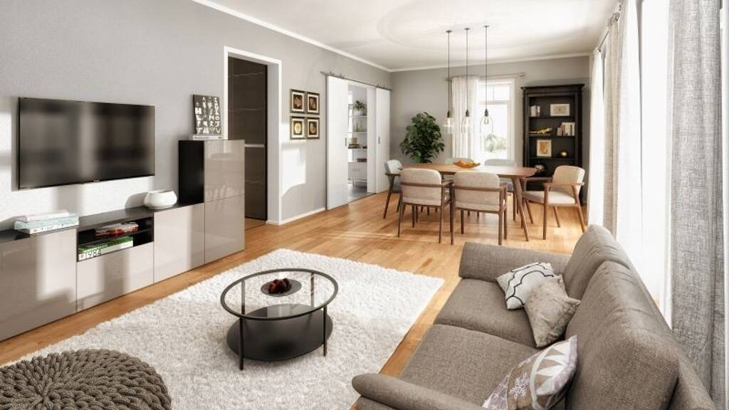 Willkommen in diesem großzügigen Einfamilienhaus, das sich ideal für Familien mit Kindern eignet. Mit einer Wohnfläche von 142 m² und einem durchdachten Raumkonzept bietet dieses Haus Platz für gemeinsame Aktivitäten sowie Rückzugsmöglichkeiten. Genießen Sie die lichtdurchfluteten Räume, die durch hohe Fenster eine freundliche Atmosphäre schaffen. Das Erdgeschoss besticht durch ein einladendes Wohnzimmer mit angrenzender Essecke und Küche. Das Dachgeschoss beherbergt ein großes Schlafzimmer mit Ankleide sowie zwei weitere Schlafzimmer für Ihre Kinder. Lassen Sie sich von den Vorzügen dieses Hauses begeistern und kontaktieren Sie uns für weitergehende Informationen!