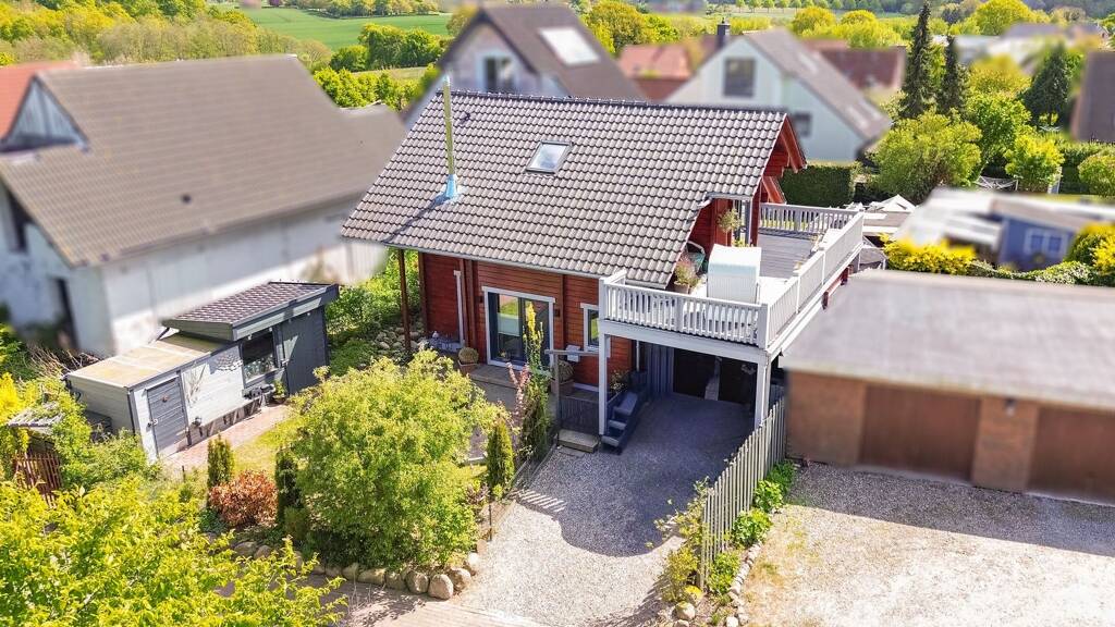 Willkommen in Ihrem neuen Traumhaus in Hohenfelde, nur wenige Schritte von der malerischen Ostseeküste entfernt. Dieses hochwertige Holzblockhaus im skandinavischen Stil, welches im Jahre 2020 gebaut wurde, bietet auf einer Gesamtfläche von ca. 165 m² modernen Wohnkomfort und vereint nachhaltige Bauweise und Energieeffizienz. Das Erdgeschoss besticht durch einen offenen Wohn- und Essbereich mit integrierter Küche. Von hier aus gelangen Sie direkt auf die Terrasse, die zu entspannten Stunden im Freien einlädt. Zusätzlich führt der lichtdurchflutete Wohn- und Essbereich in einen großzügigen Hauswirtschaftsraum. Vom HWR kommen Sie ebenfalls zur Terrasse sowie auch zu Ihrem Carport. Der Carport bietet Ihnen ausreichend Platz für ein Wohnmobil. Im Obergeschoss finden Sie ein Duschbad und zwei gemütliche Schlafzimmer. Vom Elternschlafzimmer haben Sie einen direkten Zugang zu Ihrem großzügigen Balkon, welcher in Süd-West-Ausrichtung liegt. Der vollunterkellerte Bereich verfügt über zwei vollwertige Schlafräume und zusätzliche Staufläche. Das ca. 342 m² große Grundstück verfügt über eine moderne und hochwertige Außensauna, die Ihnen das ganze Jahr über Wellness und Entspannung bietet. Dank der hochwertigen Bauweise und der modernen Luftwärmepumpe erfüllt dieses Haus die Anforderungen der Energieklasse A+ und entspricht den KfW 55 Standards, was niedrige Energiekosten und einen minimalen ökologischen Fußabdruck garantiert. Erleben Sie das perfekte Zusammenspiel von skandinavischem Charme und deutscher Qualität in einer der schönsten Regionen Deutschlands. Kontaktieren Sie uns noch heute, um einen Besichtigungstermin zu vereinbaren und sich selbst von der einzigartigen Atmosphäre dieses Hauses zu überzeugen!