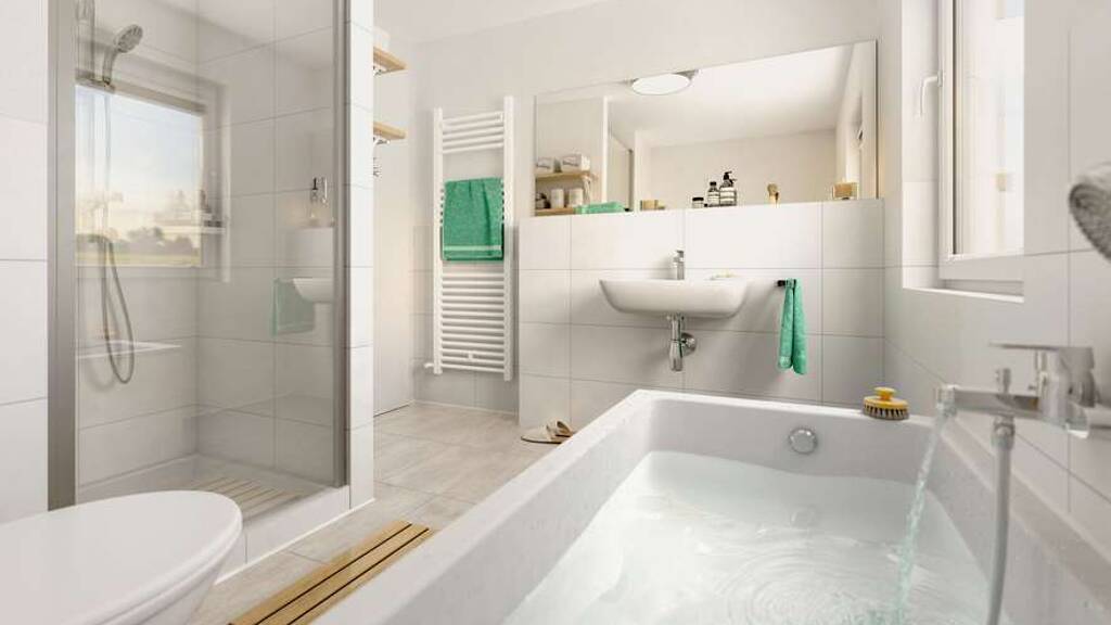 Baugrundstück Effizienzhaus 55 im Standard, Effizienzhaus 40 gegen Aufpreis Bodengrundgutachten, Gründungspolster und Bodenplatte Bauantrag Bauleitung durch erfahrene Bauleiter Massives Mauerwerk aus Porenbetonsteinen Innen- und Außenputz Dachziegel, Farbe wählbar Estrich inkl. Schall- und hochwertiger Wärmedämmung Energieeffiziente Wärmepumpe mit Warmwasserspeicher Fußbodenheizung mit Einzelraumregelung Vorrüstung Photovoltaik Vorrüstung E-Auto Bad gefliest inkl. Sanitäreinrichtung von Markenherstellern 3-fachverglaste Fenster inkl. Rollläden Haustür mit Lichtausschnitt und Edelstahlgriffen Elektroanlage komplett installiert mit Verteilerschrank und Zubehör Innentüren in vielen modernen Dekoren und Beschlägen Massive Echtholztreppe mit Handlauf (nicht bei Bungalows) Kontrolle durch unabhängigen Baugutachter und vieles mehr...