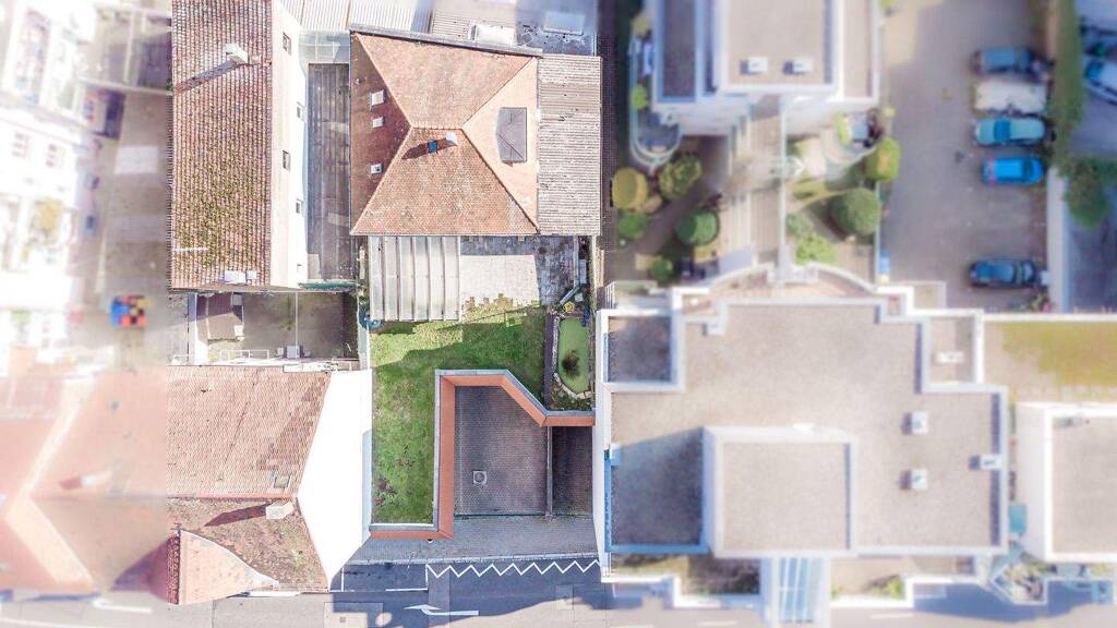 Das zum Verkauf angebotene Wohn-Geschäftshaus befindet sich auf einem 684m² großen L-förmigen Grundstück, welches in seiner Bebauungsmöglichkeit mit 4 Geschossen + ID mit GRZ 0,5, GFZ 2,0 in geschlossener Bauweise bestens geeignet ist für Bauherren, die in innenstadtnaher Lage ihren Vorteil sehen.