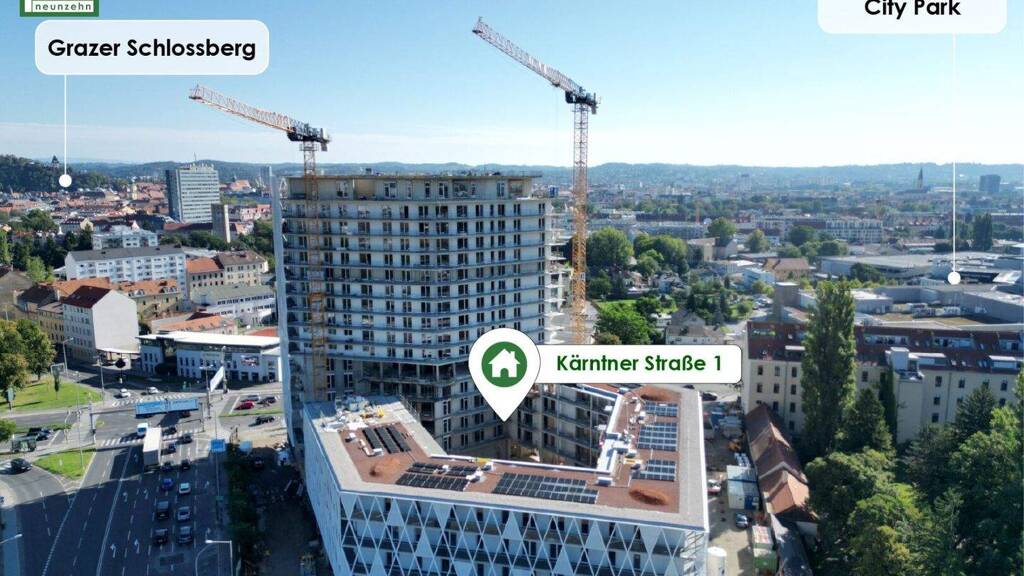 Mit barrierefreien Zugängen, einer hauseigenen Tiefgarage, begrünten Innenhof und intelligenten Lösungen für zeitgemäßes Wohnen. Die großzügigen Fensterfronten eröffnen einen atemberaubenden Blick über die Stadt.