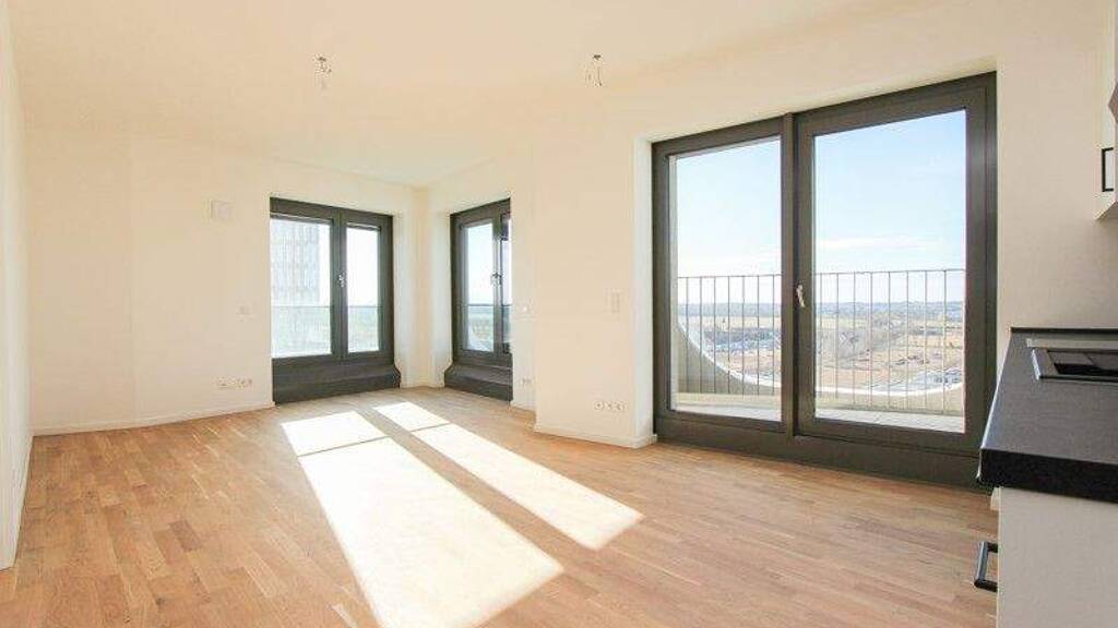Moderne Eleganz in luftiger Höhe! Im 12. Obergeschoss eines eleganten Hochhauses gelegen, bietet diese exklusive 3-Zimmer-Wohnung auf 76,14 m² eine harmonische Verbindung aus hochwertiger Ausstattung und komfortablem Wohnraum. Der großzügige Wohn- und Essbereich überzeugt durch hochwertiges Eichen-Echtholzparkett und eine angenehme Fußbodenheizung, die den Raum besonders einladend machen. Eine moderne Einbauküche mit allen notwendigen Geräten sorgt für zusätzlichen Komfort. Zwei separate Zimmer bieten flexible Nutzungsmöglichkeiten - ideal als Schlaf-, Kinder- oder Arbeitszimmer. Der nach Westen ausgerichtete Balkon lädt dazu ein, die Abendsonne zu genießen und bei klarer Sicht das malerische Alpenpanorama in Ihr Zuhause zu holen. Ein modernes Badezimmer mit bodengleicher Dusche und hochwertigen Markenarmaturen rundet das stilvolle Raumangebot ab. Zusätzlich gehören ein privates Kellerabteil, der Zugang zu einem abschließbaren Fahrradkeller und die Nutzung eines Tiefgaragenstellplatzes zu den Annehmlichkeiten dieser einzigartigen Wohnung.