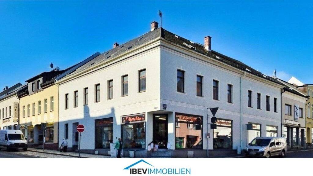 Das 1875 erbaute Objekt befindet sich im Zentrum von Falkenstein. Dieses Eckhaus mit Ladengeschäft läßt vielfältige Nutzung zu. Nach 2000 erhielt es eine neue Fassade und Kunststoff Fenster. Zur Rückseite sind noch Holzverbundfenster zu finden. Ebenfalls wurden das Treppenhaus und 1 Wohnung renoviert. 2 weitere Wohneinheiten sind vorhanden aber sanierungsbedürftig. Das Dach ist mit Bitumenschindeln und Kunstschiefer gedeckt. Dort kann auf ca. 150qm weiter ausgebaut werden und es können mindestens 2 weitere Wohnungen entstehen.