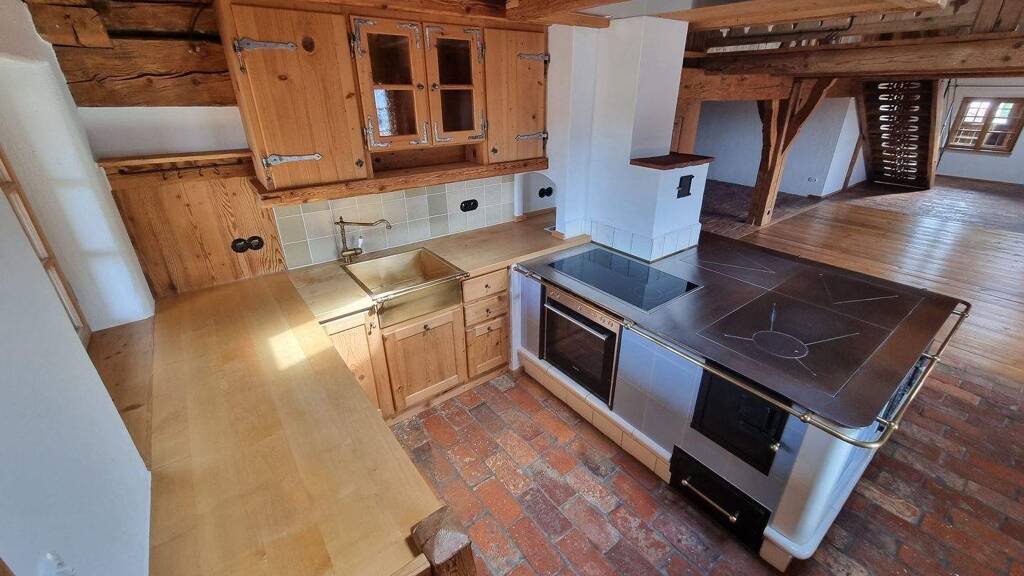 In dieser, mit rustikalem Charme und modernem Komfort gestalteten Wohnung finden Sie vor: ***Hochwertige, zur Wohnung passende Einbauküche mit deutschen Markengeräten ***von jeder Stromversorgung unabhängiger Küchenherd mit Backrohr und Warmhaltebereich ***Tageslicht helles Bad mit Wanne, Dusche, Waschbecken mit Unter - und Spiegelschrank sowie Waschmaschinenanschluss ***Armaturen im Bad nach historischen Mustern ***Fußbodenheizung komplett auf dieser OG Ebene plus zusätzlichem Heizkörper im Bad ***Sanitärgegenstände in Bad und WC von deutschen Markenherstellern ***Zahlreiche LED Deckenspots in Bad und Küche ***überwiegend historisches Elektro-Schalterprogramm ***Holztüren und Türstöcke aus dem Ursprungszeitraum, letzteres mit Schnitzereien ***Originalbeschläge an sämtlichen Türen und Fenstern ***Fußbodenbeläge aus massiven Holzdielen und handgefertigten, alten Klinkern