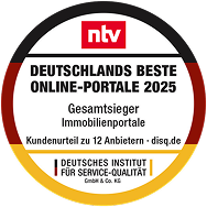 *1. Platz Gesamtsieger Immobilienportale, Studie „Deutschlands Beste Online-Portale: Immobilienporale“ ©DISQ im Auftrag von ntv, Mai 2025