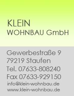 Das familiengeführte Unternehmen mit Firmensitz in Staufen im Breisgau wurde 2010 umfirmiert in die Klein Wohnbau GmbH. Diese wird von Dietmar und Josefine Klein persönlich geführt.