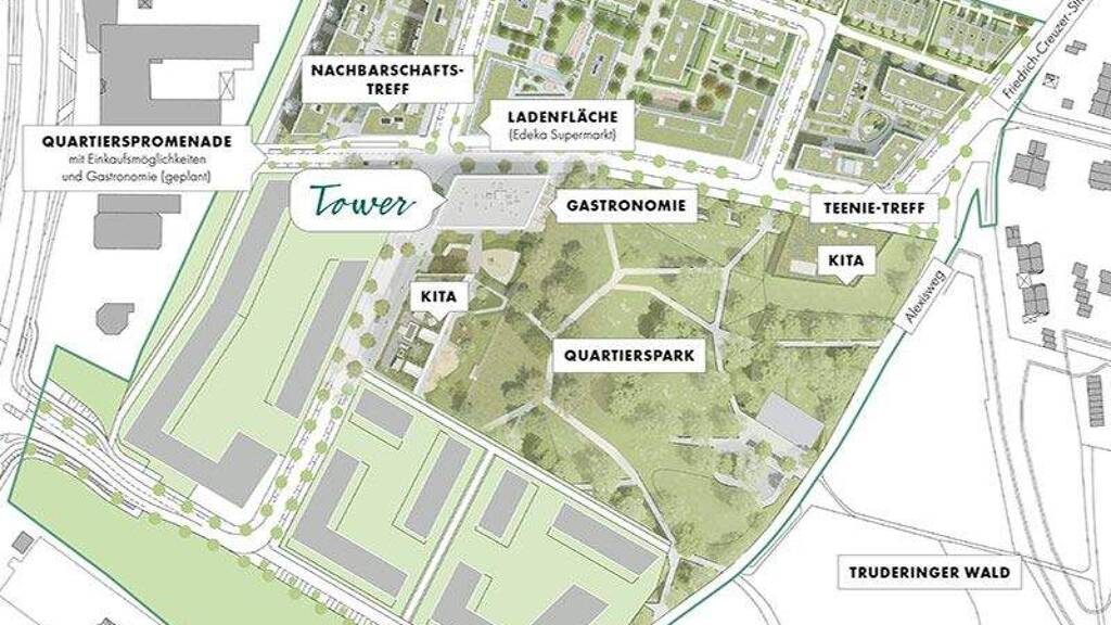 Im Münchner Osten, in Perlach – direkt angrenzend an die Gartenstadt Trudering und den Truderinger Wald – entsteht ein modernes Stadtquartier mit starker Identität. Eigentumswohnungen, Reihenhäuser, eine eigene Promenade, Nahversorgung, großzügige Grünflächen und Kindertagesstätten fügen sich zu einem lebenswerten Wohnumfeld.