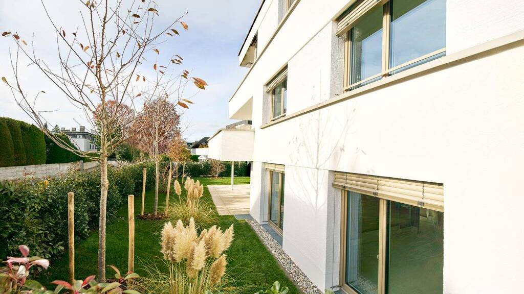 Zu den Qualitätsmerkmalen zählen unter anderem Echtholzparkettböden sowie eine erstklassige Sanitärausstattung renommierter Markenhersteller. Großzügige, bodentiefe Fenster- und Türelemente schaffen helle, lichtdurchflutete Wohnräume mit offener Atmosphäre.