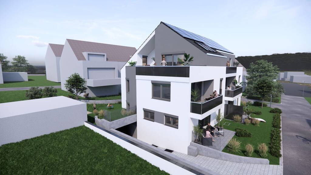 Ihr neues Zuhause in Gärtringen Modernes Wohnen mit Komfort Willkommen in Ihrem neuen Zuhause! In der Ludwig-Thoma-Straße 23 in Gärtringen entsteht ein modernes Wohnhaus mit fünf attraktiven Wohnungen, die zeitgemäßen Wohnkomfort mit einer attraktiven Lage verbindet. Ob 3- oder 4-Zimmer-Wohnung, hier finden Sie durchdachte Grundrisse und Wohnflächen von ca. 70 bis 125 m² – ideal für Familien, Paare oder anspruchs- volle Singles. Die Erdgeschosswohnungen begeistern mit Terrasse und eigenem Garten, die Obergeschosswohnungen mit sonnigen Balkonen. Die exklusive Penthouse-Wohnung bietet zwei Dachterrassen sowie einen zusätzlichen Balkon. Moderne Ausstattung wie Fußbodenheizung, elektrische Rollläden, eine Videosprechanlage und boden- gleich geflieste Duschen sorgen für ein modernes Wohngefühl. Ein Aufzug, Platz für Fahrräder und repräsentative Doppelfalzeingangstüren runden das Angebot ab. Die energieeffiziente Bauweise eines Effizienzhaus 55 EE (PVT-Wärmepumpe - Photovoltaik-Solarthermische Wärmepumpe zur Erzeugung von Heizungs- und Warmwasser sowie Strom) sorgt für einen langfristigen Werterhalt und trägt dazu bei, dass die Energiekosten im Rahmen bleiben. Ein modernes Wohngefühl ist bei diesen Wohnungen garantiert. Für jede Lebensphase und für jeden Geschmack findet sich hier die passende Größe. Sie sind ideal geeignet für Singles, Paare oder Familien. Hier wird komfortables und individuelles Wohnen großgeschrieben. Auch für sicherheitsorientierte und zugleich renditebewusste Kapitalanleger lohnt sich die Investition. Lage. Ausstattung. Wohnkomfort. Hier stimmt alles!