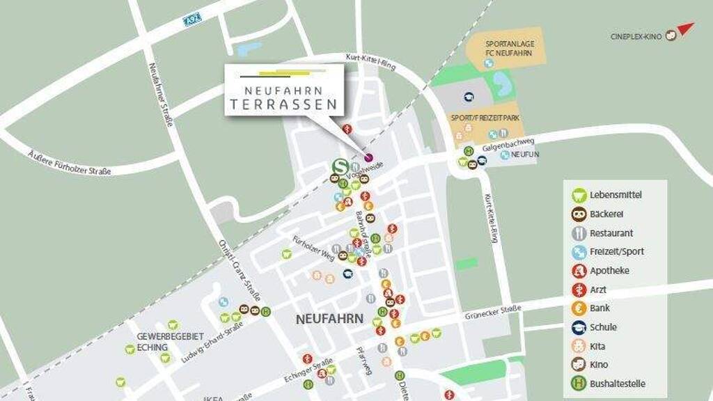 DIE NEUFAHRN TERRASSEN – Echte Wohnqualität in zentraler Lage Im Ortskern von Neufahrn, nur 150 m von der S-Bahn-Station und doch abseits vom Trubel der Einkaufsstraße, entsteht in der Vogelweide 3, 5 und 7 ein hochwertiges, architektonisch spannendes Wohnensemble, bestehend aus drei kleinen Mehrfamilienhäusern. Durch die für das Projekt charakteristische Abstufung der Geschosse vom Penthouse- über das Ober- hin zum Erdgeschoss, vermitteln die NEUFAHRN TERRASSEN nicht nur eine moderne Architektur, sondern auch eine einzigartige Wohnqualität! Mit den hellen und gut durchdachten 1-, 2- und 3-Zimmer-Wohnungen zwischen 30,5 m² und 89 m² bieten die NEUFAHRN TERRASSEN von der kompakten Singlewohnung im Obergeschoss mit Balkon in Westausrichtung bis zur eleganten Penthousewohnung mit großzügiger Dachterrasse für jede Lebenssituation und jedes Alter die passende Wohnung. Besonderes Highlight sind auch die intelligent geschnittenen 1- und 2-Zimmer-Gartenwohnungen mit eigenem privaten Wohnungszugang, sonnigen Terrassen und Gärten. Wählen Sie Ihre Traumwohnung – zur Eigennutzung oder als sichere Geldanlage gegen die Inflation. Architektur mit sonnigem Mehrwert Bei den NEUFAHRN TERRASSEN ist der Name Programm, denn jede Wohneinheit bietet seinen Bewohnern eine eigene Terrasse, einen Balkon oder eine Dachterrasse. Heizen Sie nach einem anstrengenden Arbeitstag in Ihrem Garten den Grill an, genießen Sie die Neufahrner Abendsonne auf dem Balkon oder entspannen Sie in der Hängematte oder bei einem Abendessen mit Freunden auf Ihrer großzügigen Dachterrasse.
