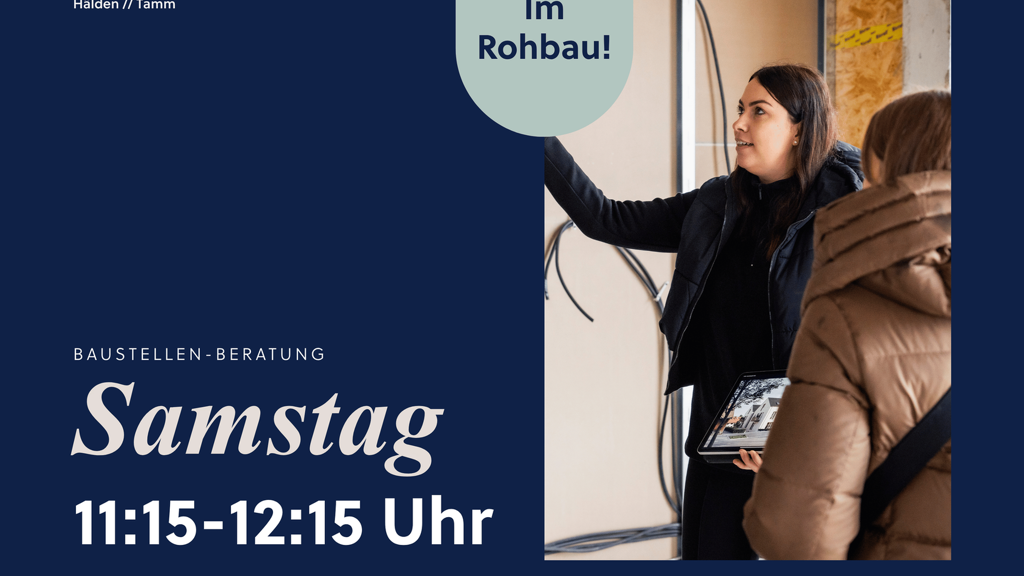 Baustellenberatung: Samstag von 11:15 bis 12:15 Uhr am 14.03.2026; 28.03.2026; 11.04.2026 & 25.04.2026. Sie finden unseren Beratungscontainer in der Häldenstraße 2/1 in Tamm.