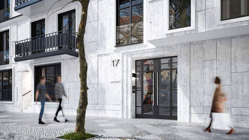 Das markante Eckgebäude mit seinen eleganten Fenstern, Brüstungen und Details besteht aus einem Vorderhaus entlang der Simplonstraße mit zwei Treppenaufgängen und einem Vorderhaus, entlang der Dirschauer Straße, mit einem Treppenaufgang. In diesen 3 Treppenhäuser befinden sich auch die Aufzüge. Rückwärtig umschließen zwei Seitenflügel den gemeinschaftlichen Hof. Die landschaftsgärtnerisch gestaltete Anlage ist eine grüne Oase und rundet die perfekte Architektur ab. Townhouses, Ateliers, weitläufige Apartments und Penthouses garantieren erstklassigen Wohnkomfort. Hier verbindet sich das Beste aus zwei Welten: die Großzügigkeit der Gründerzeit und der Komfort eines Neubaus mit einer exklusiven Innenausstattung. Alle Apartments verfügen entweder über einen Balkon oder einen Balkon und eine Loggia. Die Penthouses besitzen Aufdachterrassen mit einem 360° Blick über die Hauptstadt. Fußbodenheizung, Echtholz-Parkett, Stuckverzierungen und eine moderne Gebäudetechnik schenken Ihnen exzellenten Komfort. Dazu gehören auch Fenster mit integrierten Sonnenschutzrollos und die Klingel- und Video-Gegensprechanlage. Alle Bäder erhalten eine handverlesene Premium-Ausstattung.