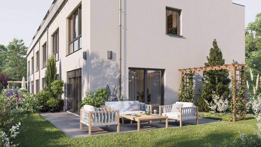 Hinter einer klassischen, hellen Putzfassade verfügen die Stadthäuser über Wohnflächen zwischen ca. 103 - 113 qm und 4 Zimmer, verteilt über drei Ebenen. Gut durchdachte Grundrisse bieten mit privaten Gärten, Terrassen und Austritten im Staffelgeschoss genügend Platz für die ganze Familie.